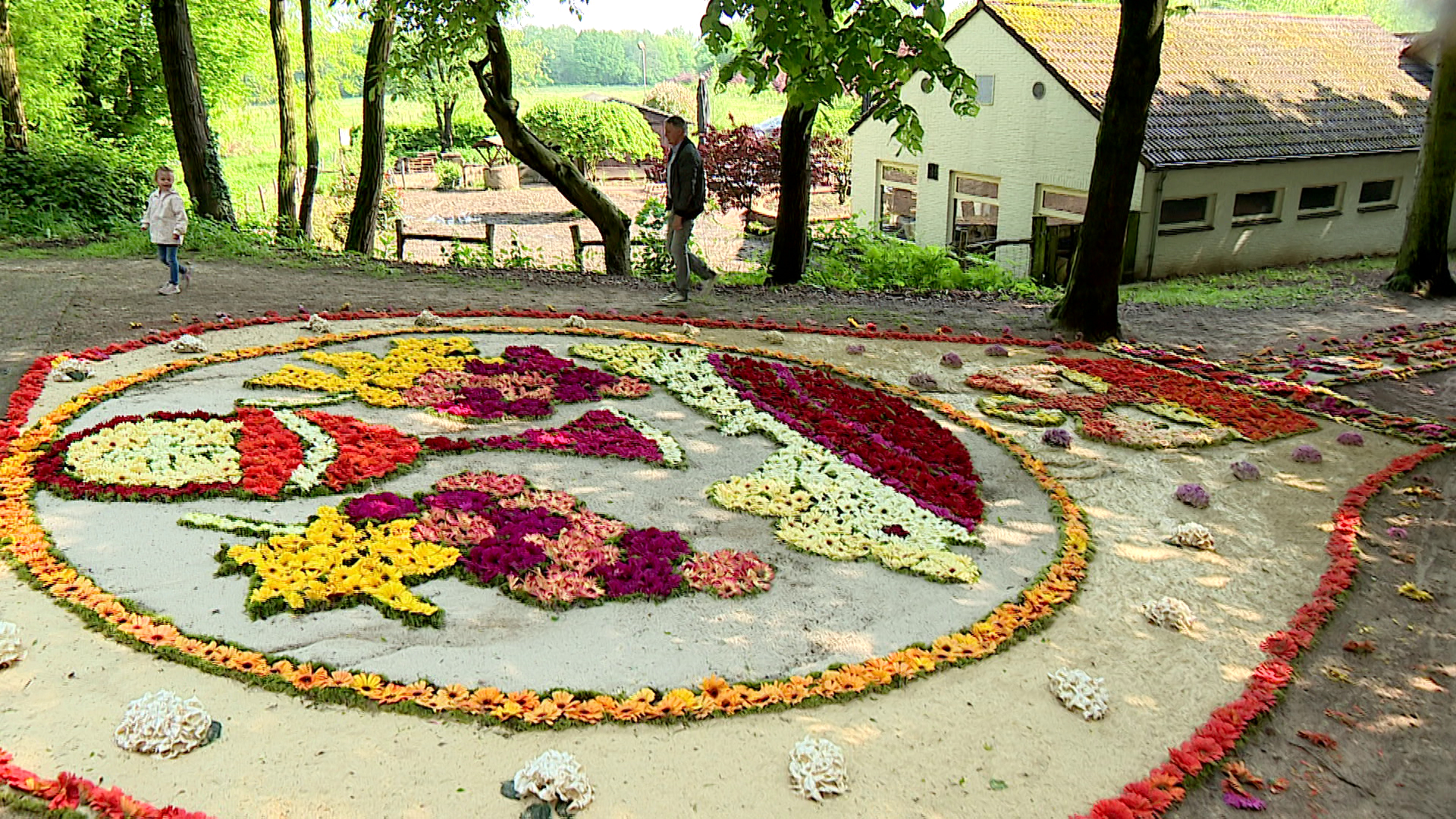 Óngerwaeg in Nunhem bij het leggen van een bloementapijt
